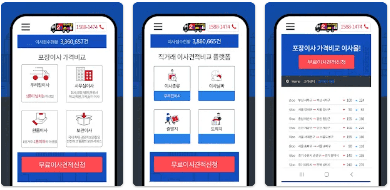 👉 이앱은 포장이사 할때 정말 유용한것같아요 견적에 따라 할수도 있고 가격도 비교하면서 저렴하게 할수있어요 포장이사 하시려는 분들 한번씩 써보면 유용할듯해요