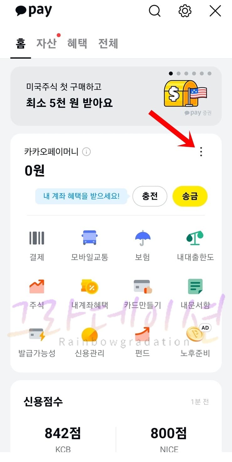 2. '카카오페이머니 > 더 보기' 탭을 클릭합니다.