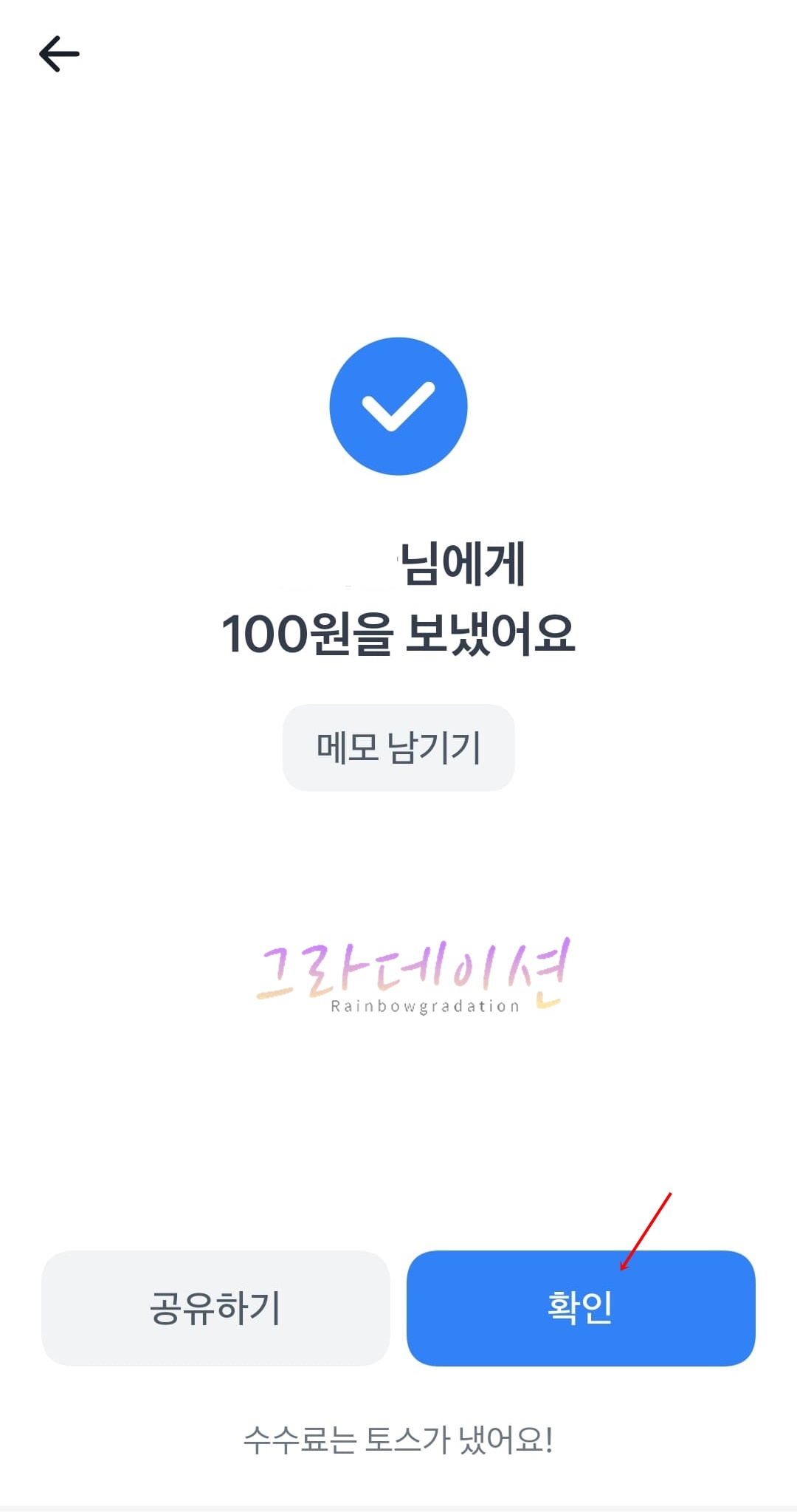 '확인'을 클릭한 후, 이체한 계좌 내역에서 상대방에게 송금이 되었는지 '확인' 하시면 됩니다.