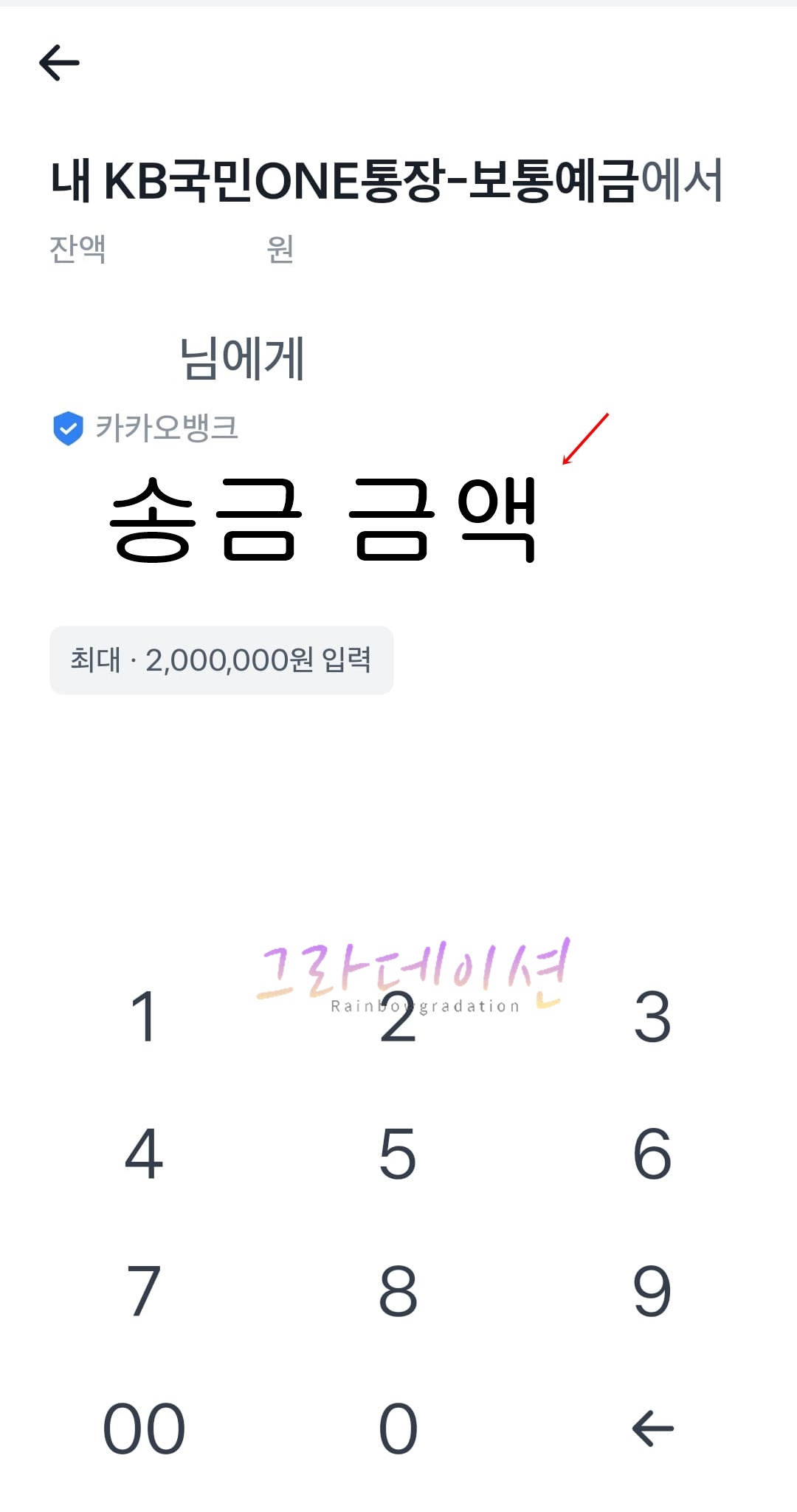 상대방에게 송금하고 싶은 '금액'을 입력합니다.