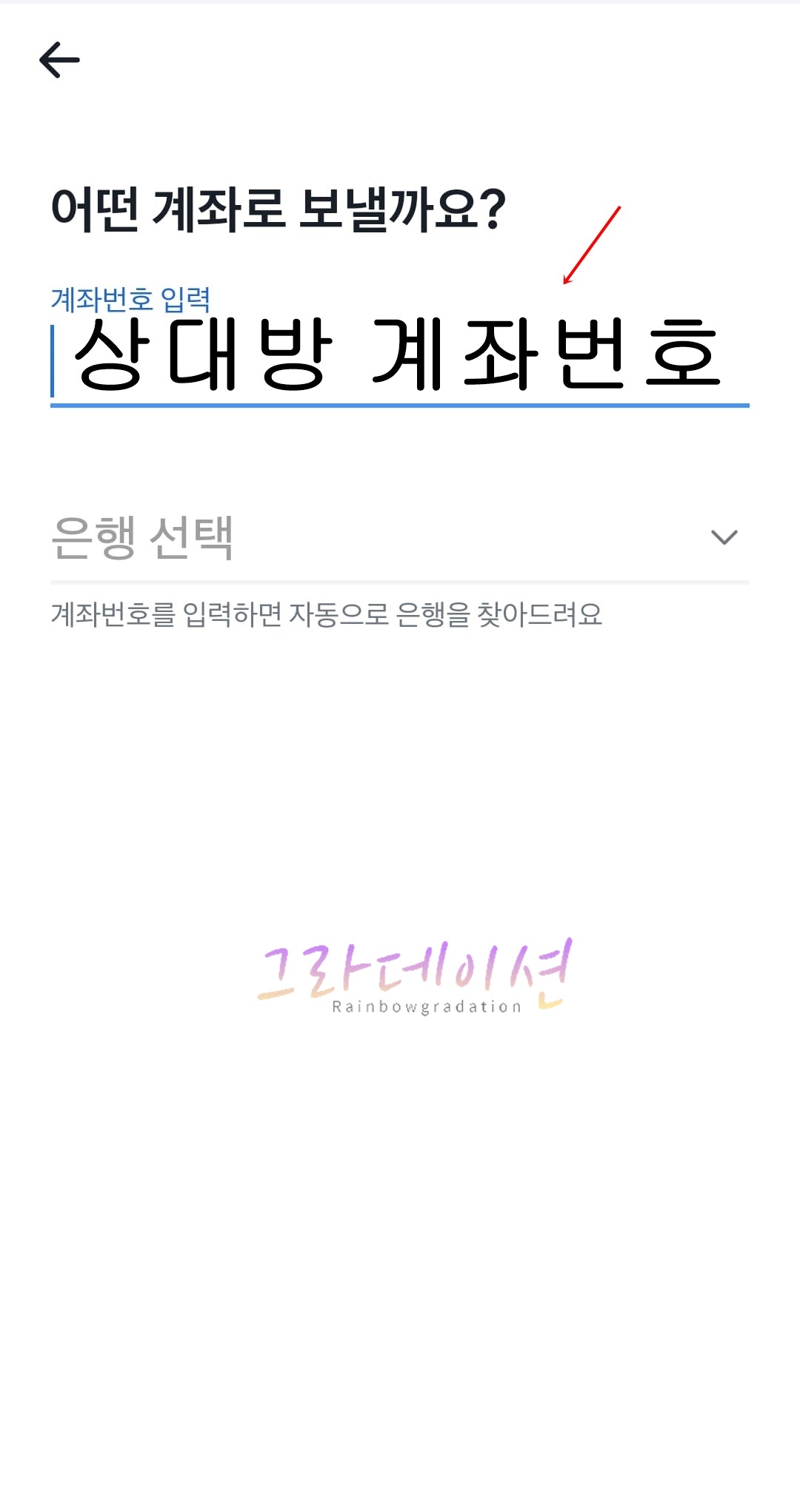 계좌번호 입력 항목에 '상대방 계좌번호'를 정확히 입력합니다.