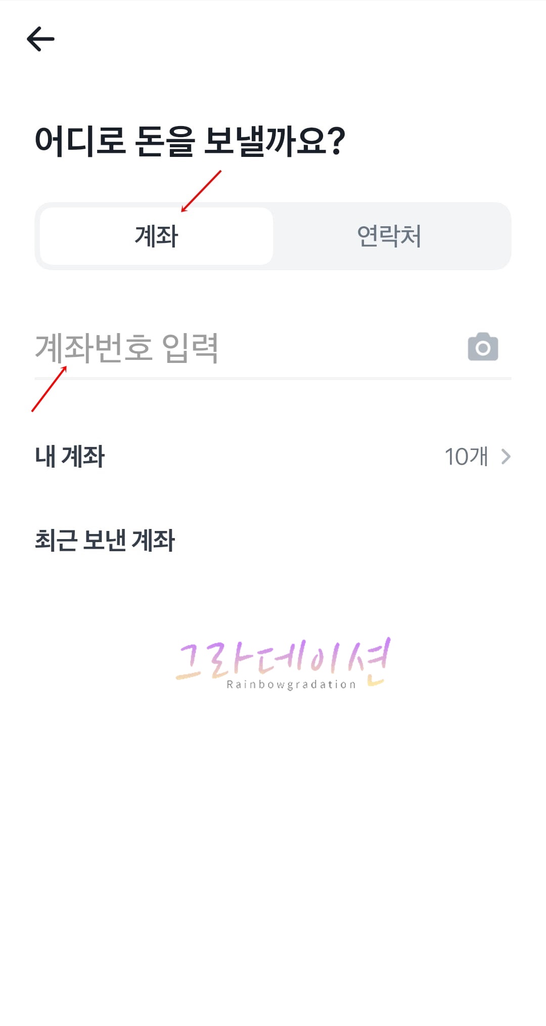 '계좌' 탭을 클릭하여 '계좌번호 입력 항목'을 클릭합니다.