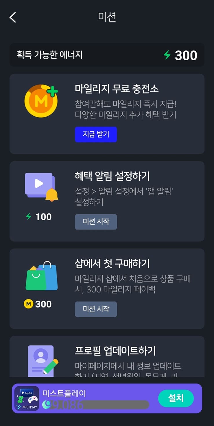 ✅ 미션으로 에너지/마일리지 모으는 방법