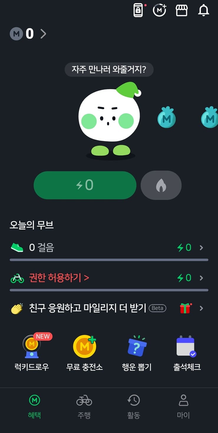 👉 걷기말고도 주행모드 사용하면 더 빠르게 마일리지를 모을 수가 있더군요! 너무 좋은 기능입니다. 매일 버스를 타고 출퇴근을 하는데 주행모드 키고 다니면서 두 달 사이 2만 마일리지나 모았네요. 만족합니다.