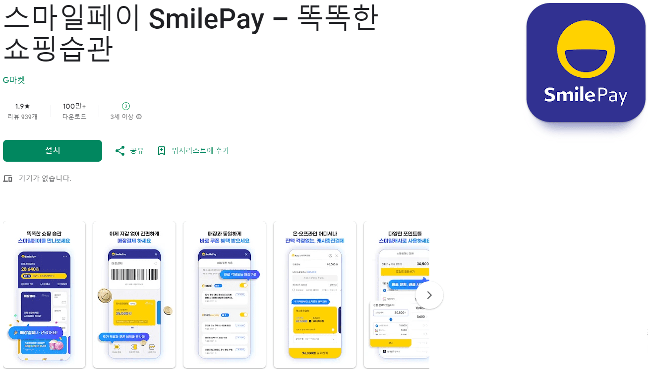 안녕하세요. 어플을 소개하는 그라데이션's입니다. 이번 시간에는 스마일페이에 대해 알아보겠습니다. 스마일페이는 신세계그룹 계열사인 지마켓에서 운영하는 간편 결제 서비스입니다. 요즘에는 스마트폰을 통한 간편 결제가 많이 이용되고 있는데요. 스마일페이도 그중 하나입니다. 이 서비스를 이용하려면 은행 계좌나 체크카드, 신용카드 등을 미리 앱에 등록하고, 각종 가맹점에서 간단한 본인 인증 후 결제할 수 있습니다. 또한 스마일페이로 결제 시 스마일캐시가 적립되며 적립된 스마일캐시는 현금처럼 사용 가능하여 적립 후 사용할 수 있습니다. 참고로 지마켓뿐만 아니라 옥션, G마켓 등의 온라인 몰 및 신세계의 이마트, 트레이더스 등의 오프라인 몰에서도 이용 가능합니다. 지금부터 스마일페이 어플과 궁금한 질문을 모두 설명해 드리겠습니다.