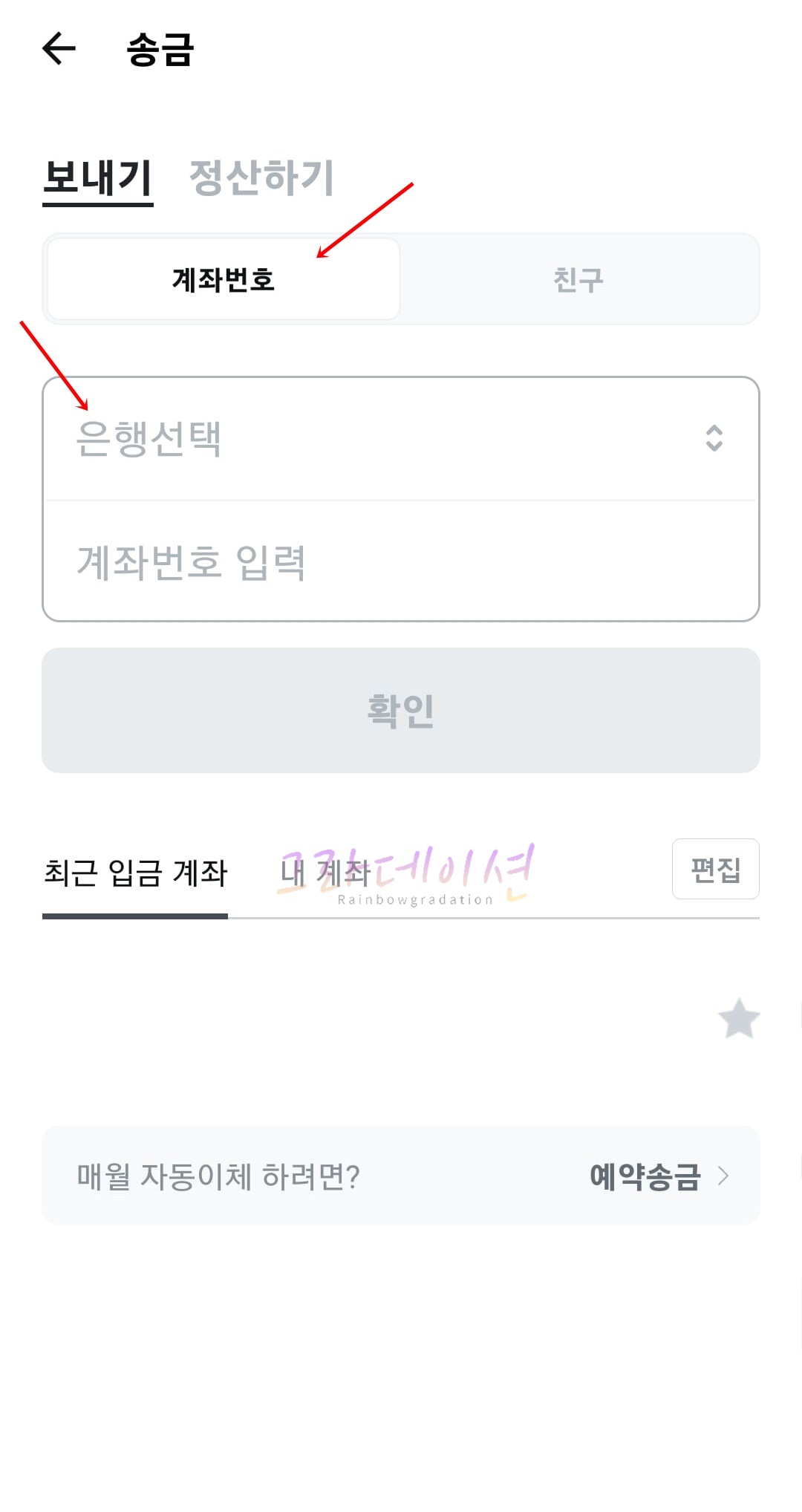 ① '계좌번호' 탭을 클릭한 후, '은행선택' 항목을 클릭합니다.