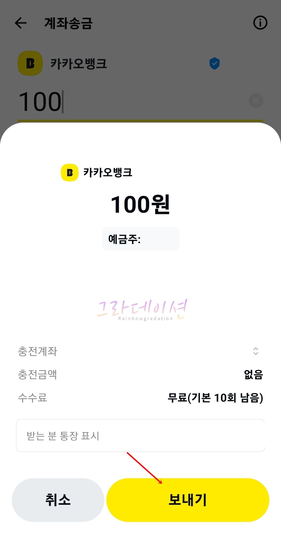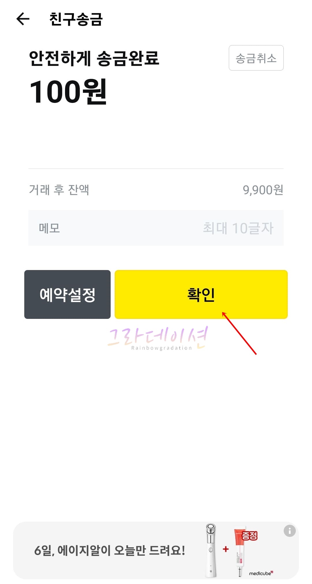 5. '확인'을 클릭하시면 상대방에게 송금이 보내집니다.