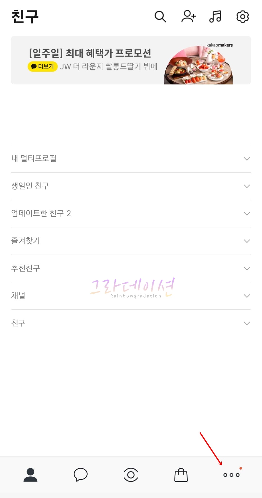 1. '카카오톡' 앱을 실행한 후, '●●● (더보기)' 탭을 클릭합니다.