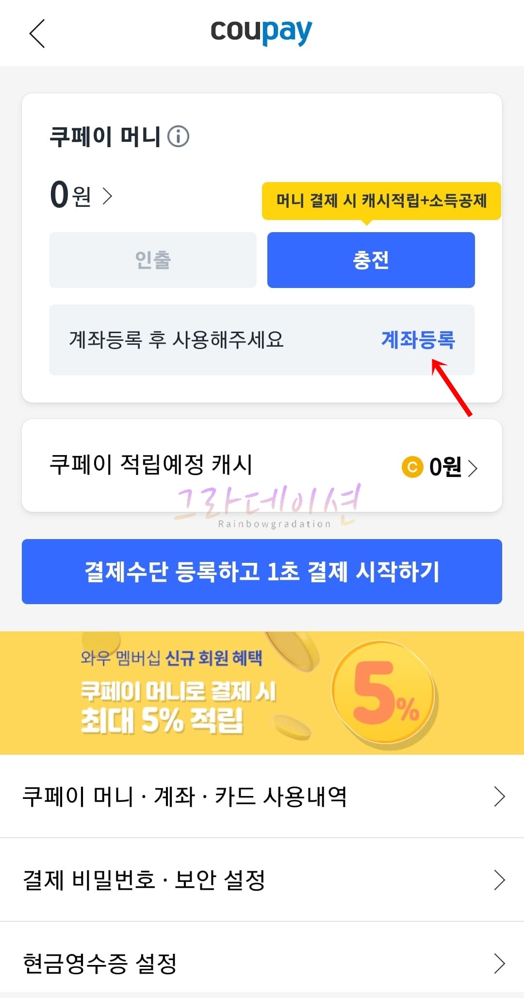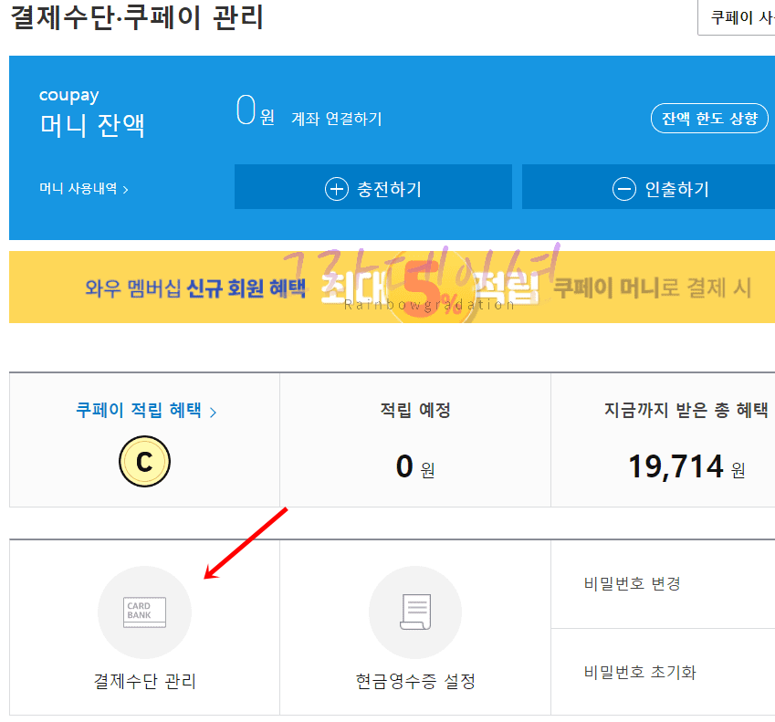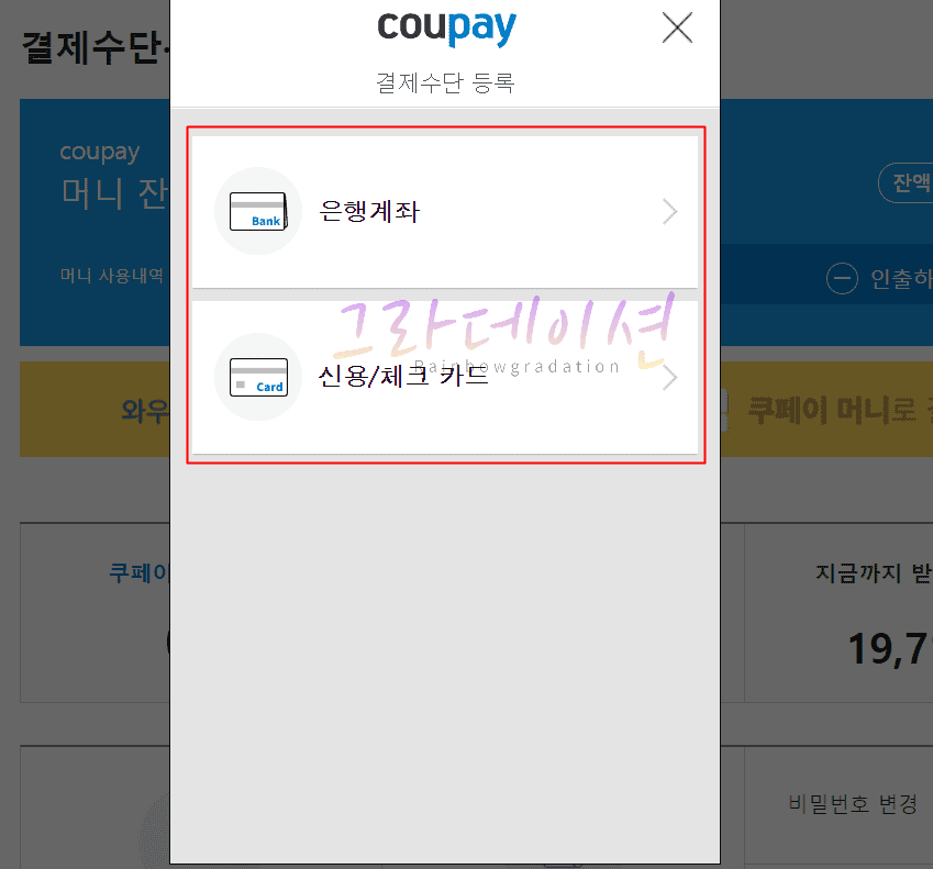 쿠팡 사이트, 결제수단 등록 방법
