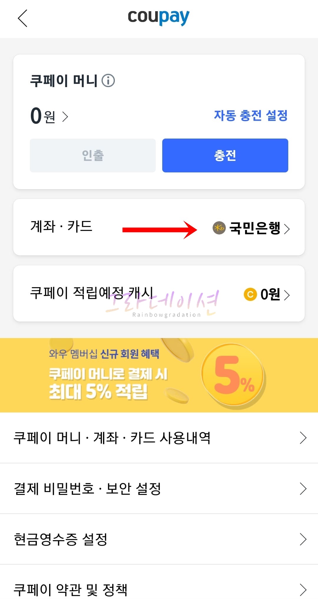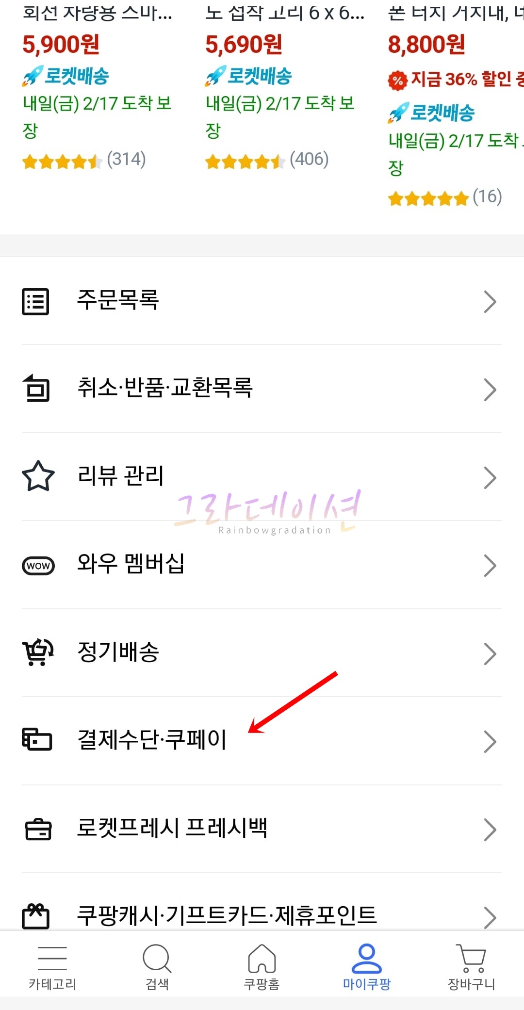쿠팡 앱, 결제수단 등록 방법