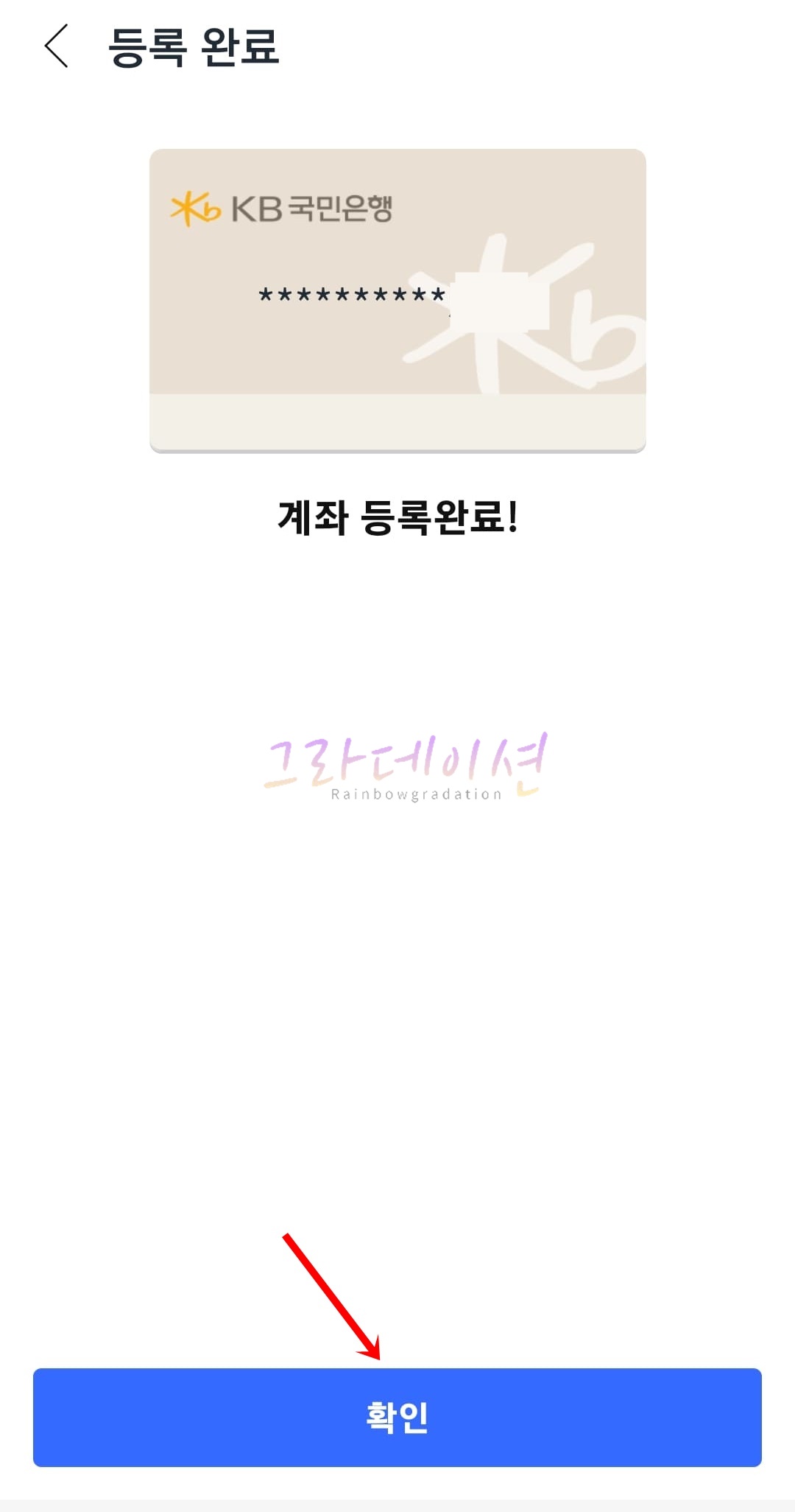 13. '확인' 버튼을 클릭하시면 쿠팡에 계좌가 등록됩니다.
