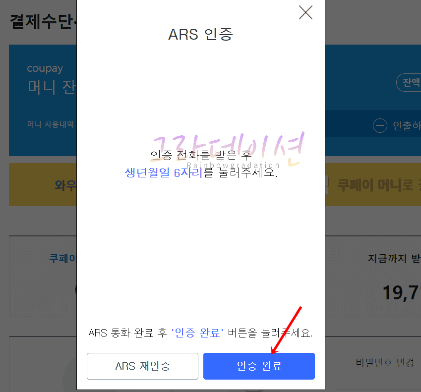 12. 인증 전화가 종료되며 '인증 완료' 버튼을 클릭합니다.