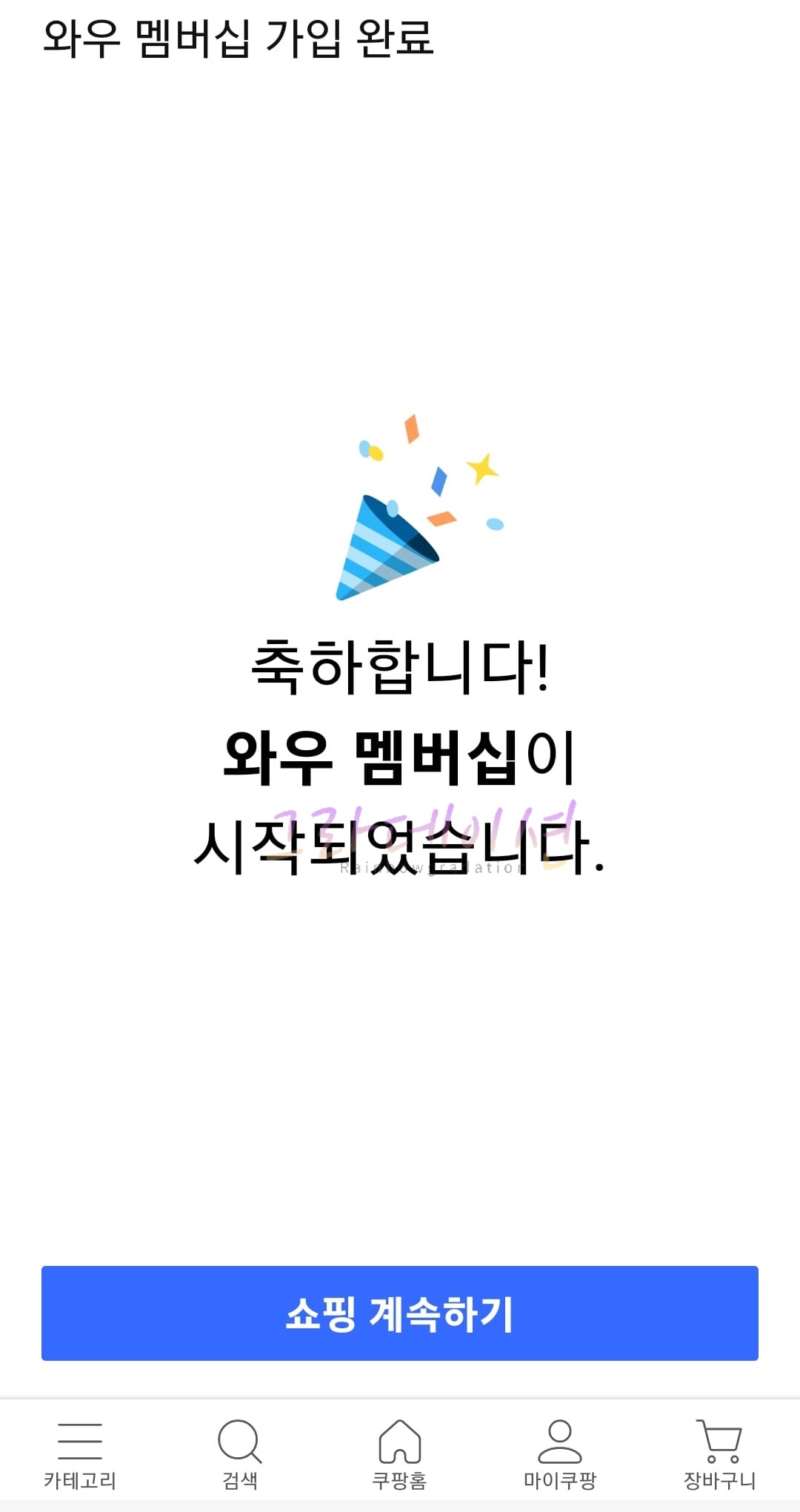 4. 로켓와우 회원이 되었습니다. 다음 달 결제일부터 4,990원이 자동으로 이체됩니다.