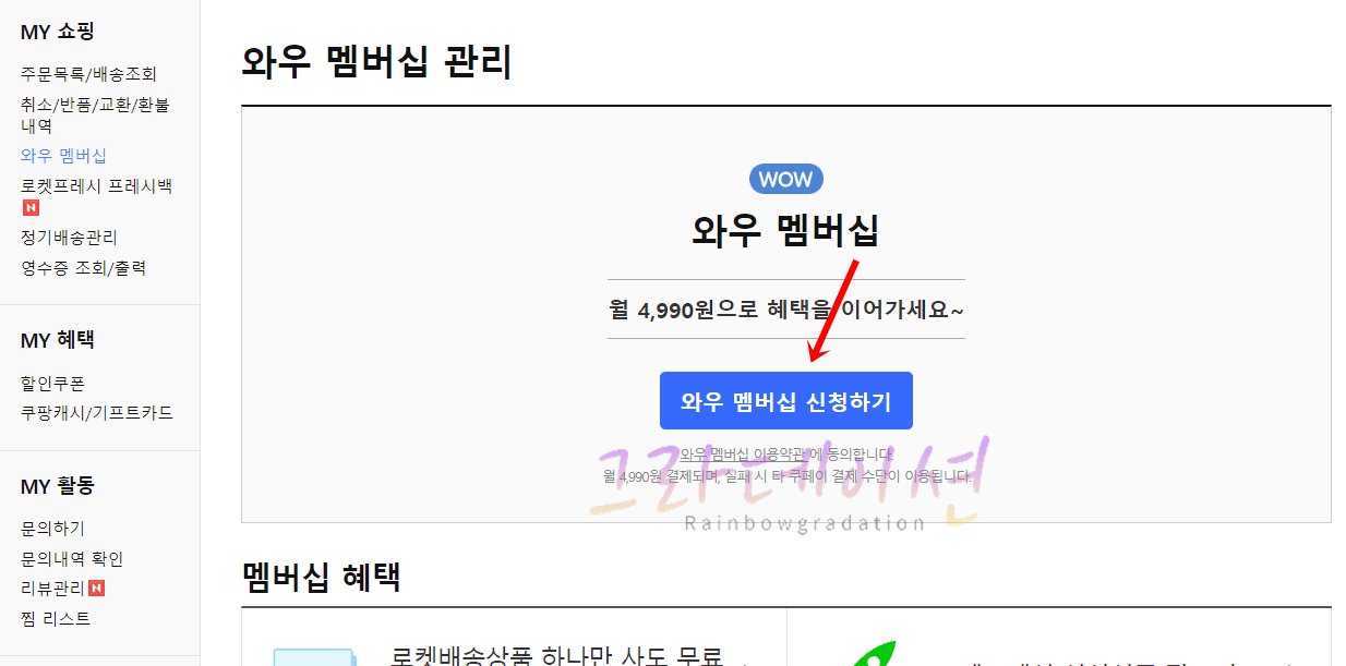 3. '와우 멤버십 신청하기' 버튼을 클릭합니다.